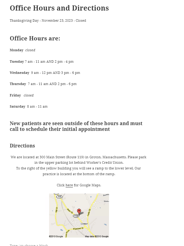 Community Chiropractic Office Hours and Directions